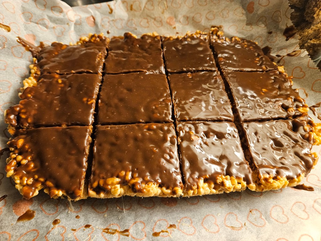 I tried to make trash. I made “Peanut Butter Rice Crisp Bars with Chocolate Ganache, €4.50 at the coffee shop.”