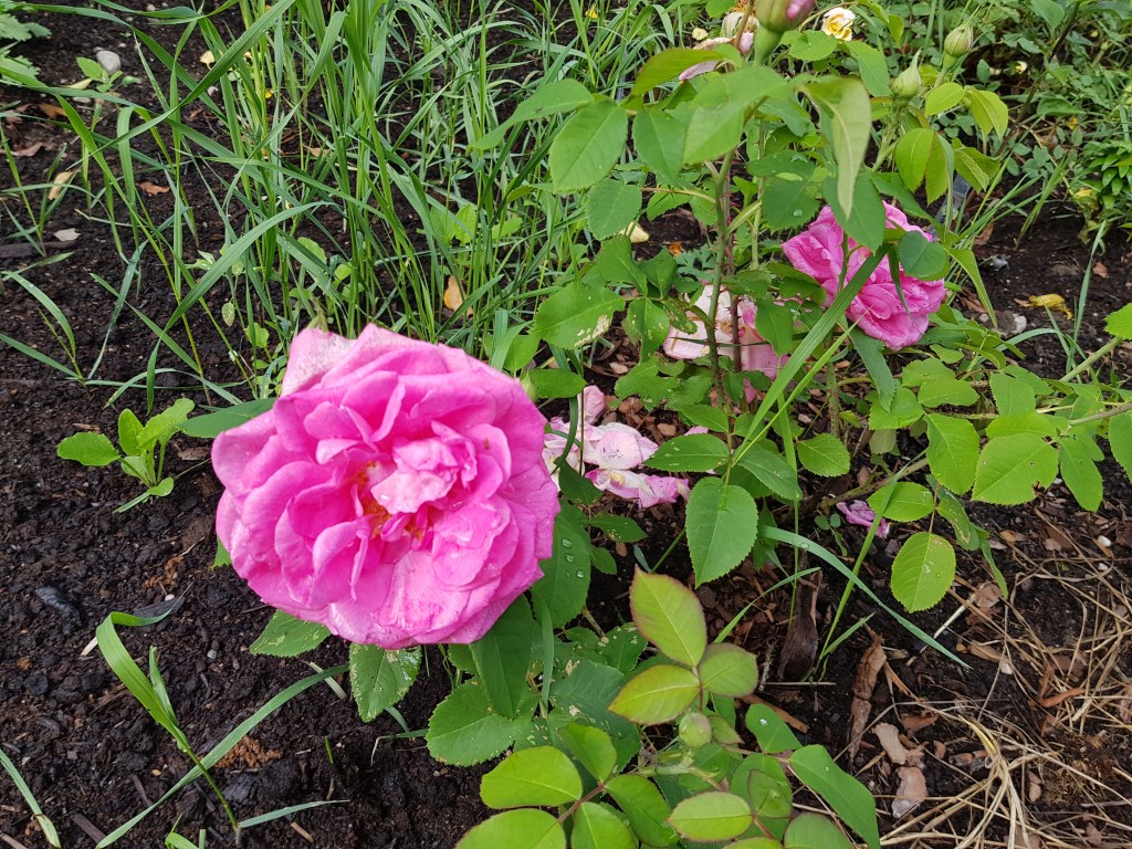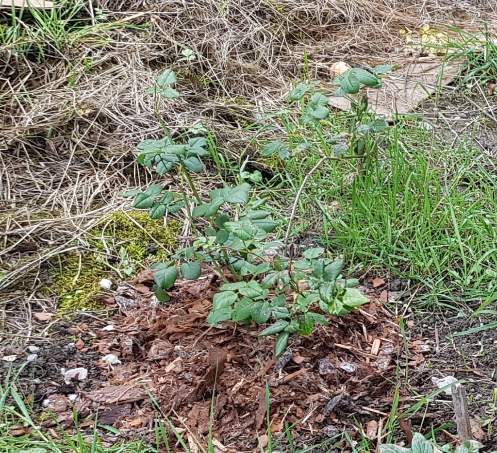 As you can see from the first picture, this plant was flowering from the first day I got it. The first year, it was unceremoniously plunked into a hole in the lawn, a few feet away from the whitecurrant and roughly where I expected my vegetable patch to eventually expand. It sat this way patiently for the next two years until said expansion actually happened, and I got around to giving it a little wooden collar, compost, and mulch. That seemed to be all it needed to put up several more branches and double its height. It got so big that I was able to take six cuttings this summer, which are now happily overwintering in the spinach bed until they are big enough to put out in the garden next spring.