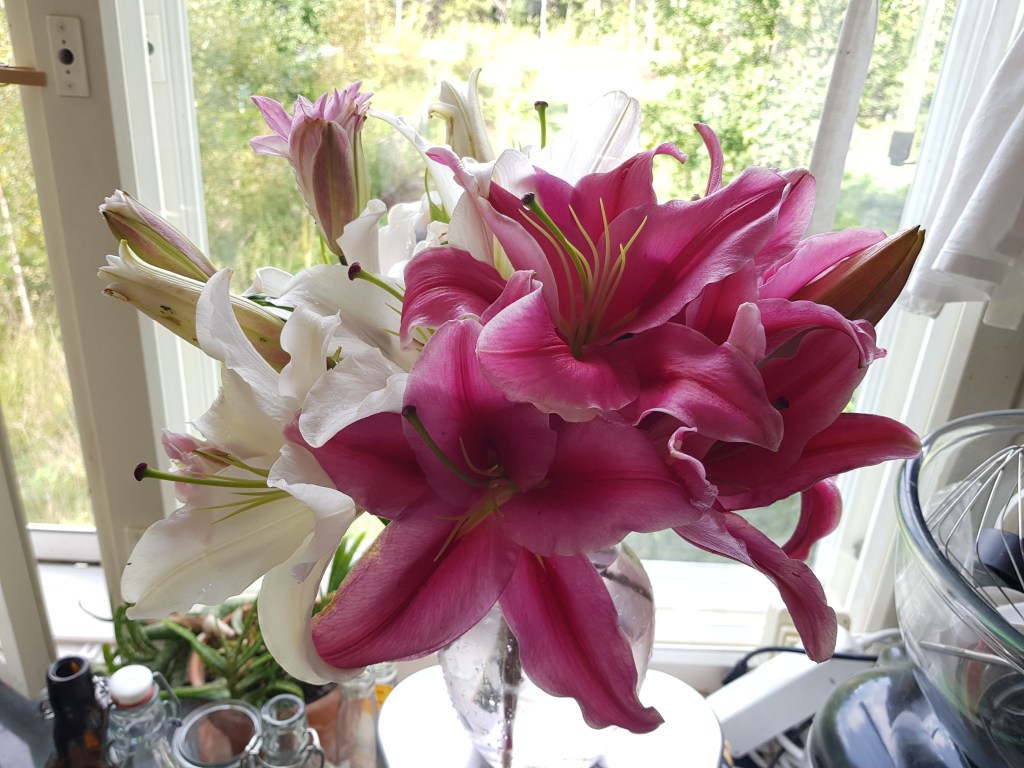 Phlox, godetia, hollyhock and tree lilies for the front hallway.