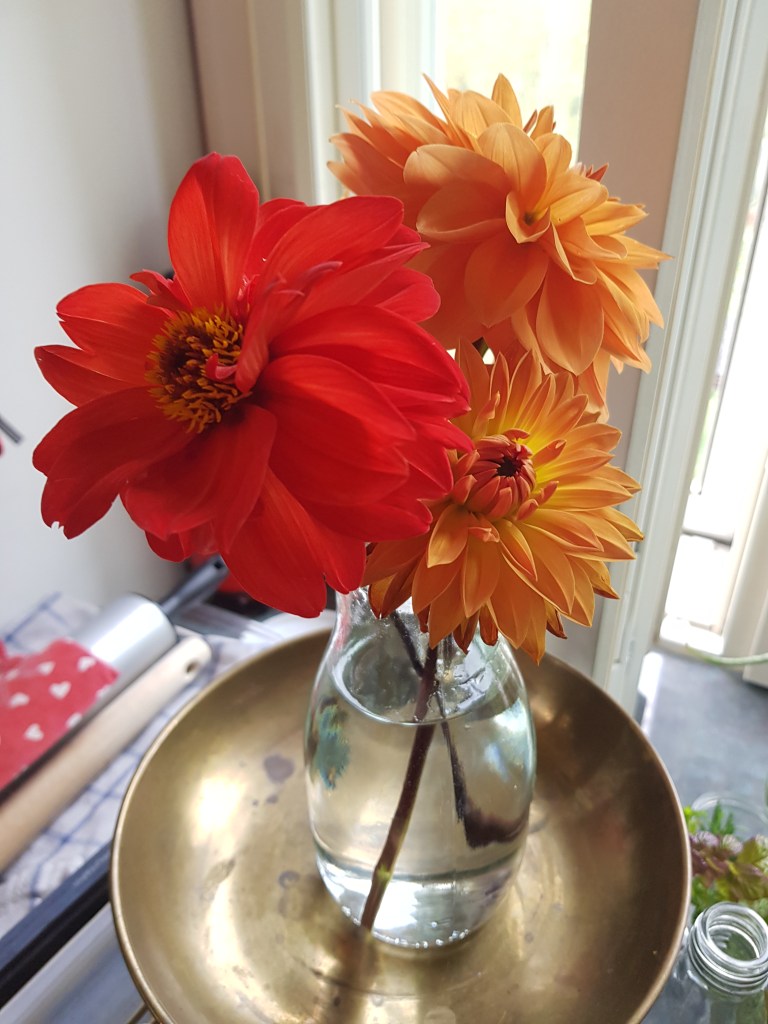 A small vase update this week, but an update nonetheless. I’m particularly happy with the first arrangement because I’m getting the hang of balancing flowers so that the heights are a bit more layered! More oranges and reds appearing, as if I needed a reminder that it’s autumn.